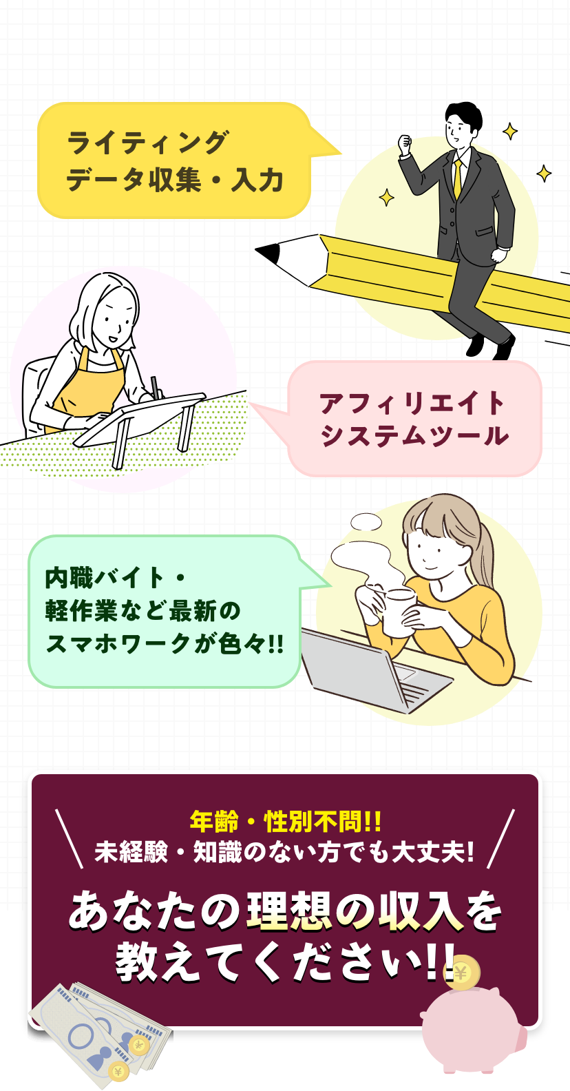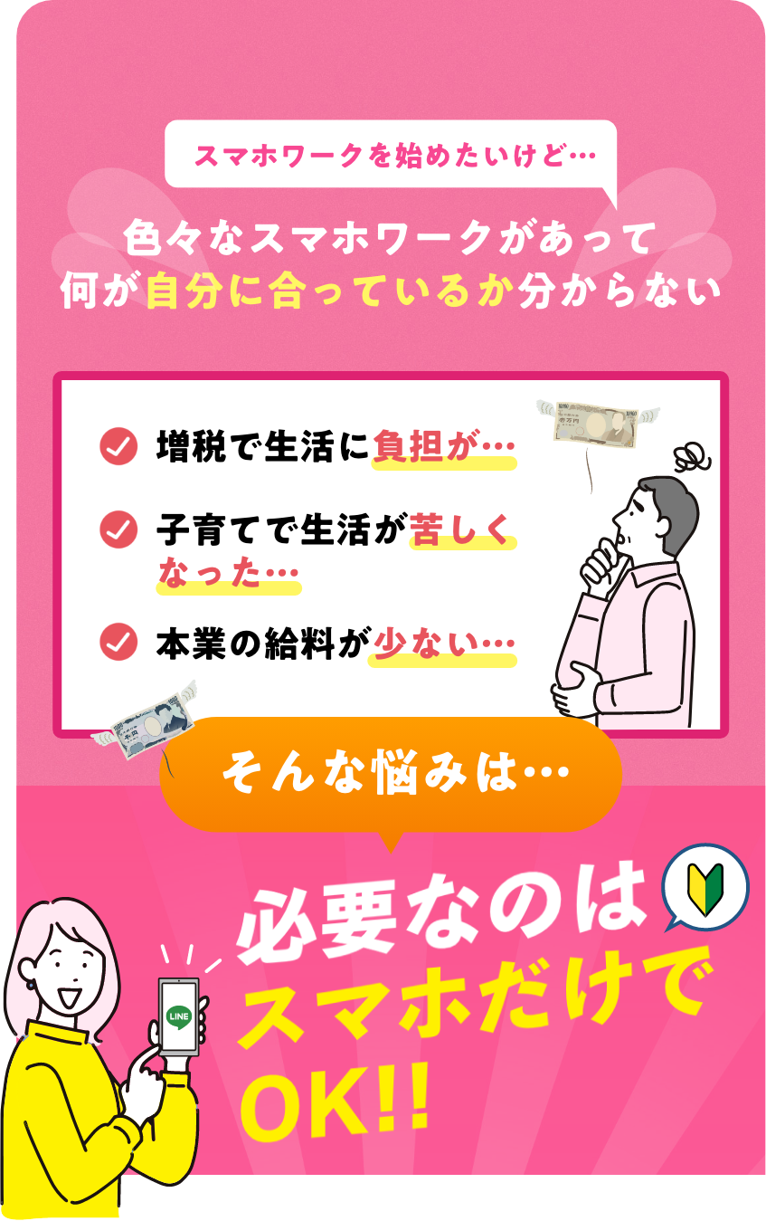 スマホワークにはいろんな種類がありますし、それぞれ向き不向きや、好き嫌いなど様々な違いがあります。